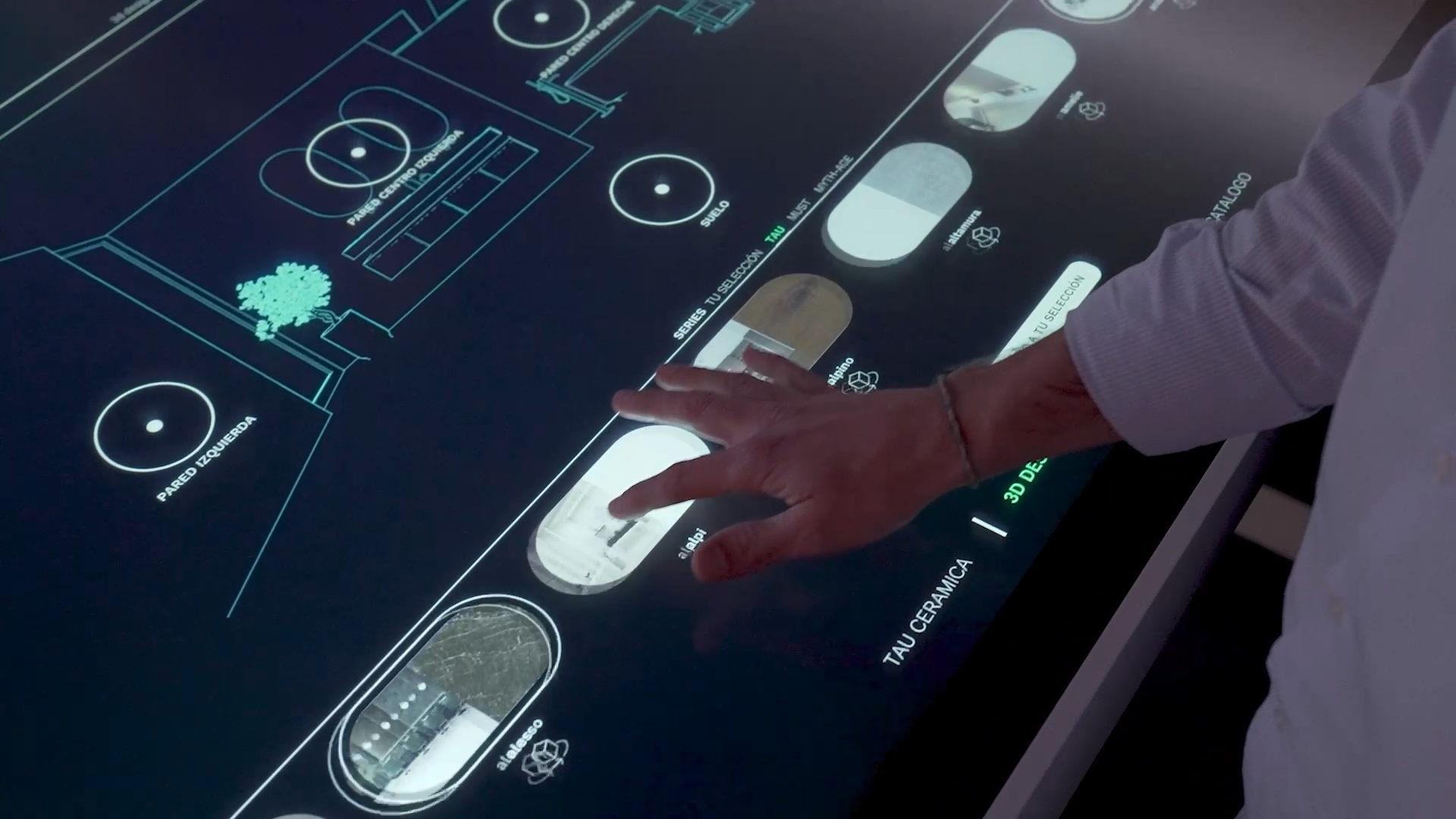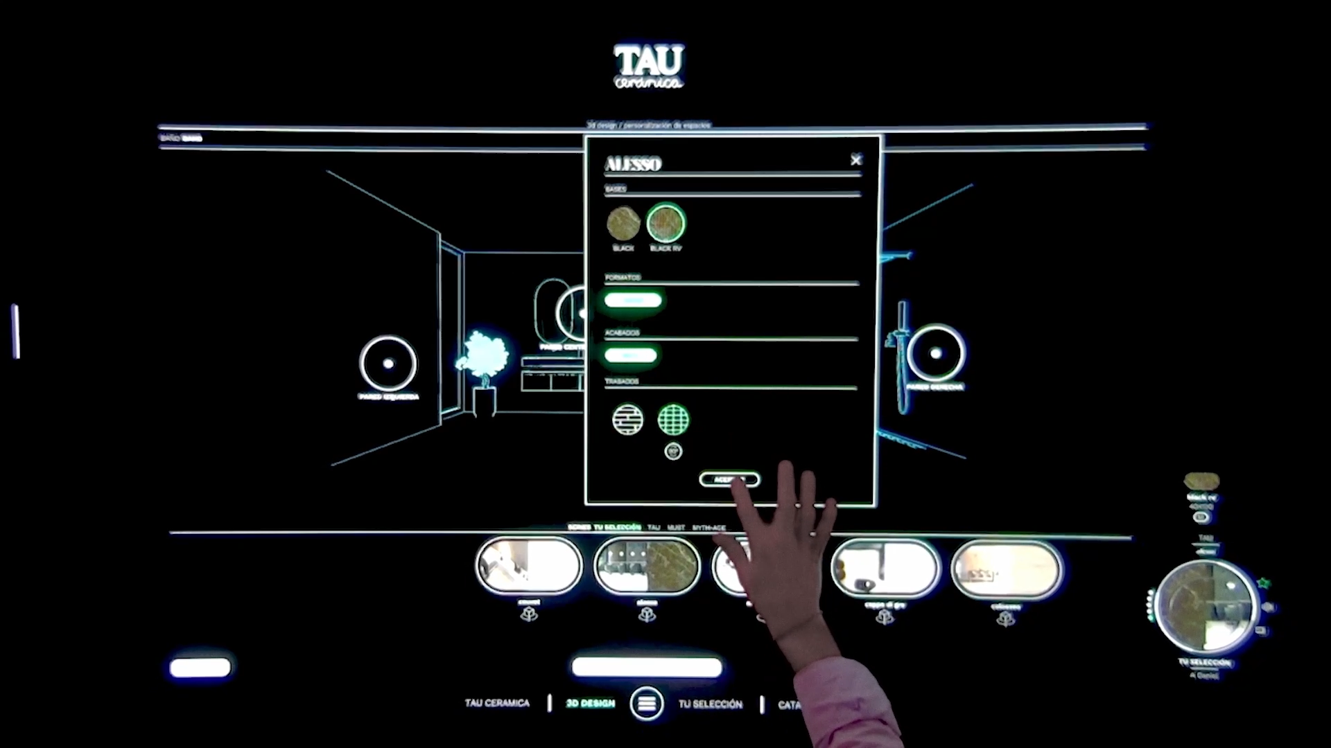 Desarrollada específicamente para el Showroom Immersive Box, esta aplicación permite a los clientes explorar el catálogo de TAU, visualizar diseños de espacios y controlar escenas en tiempo real, con una interfaz intuitiva disponible en varios idiomas.